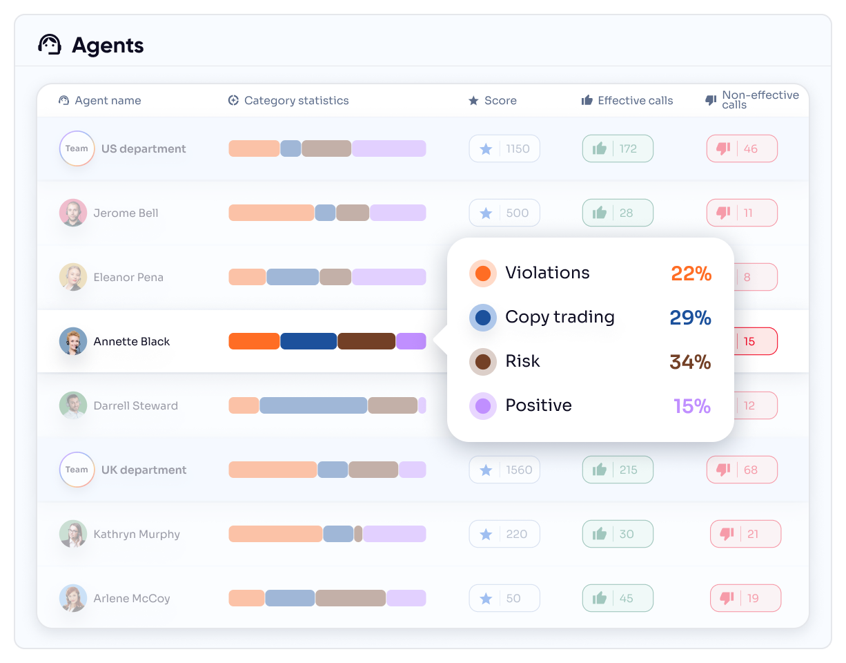 90'dan fazla dil desteğiyle TrackThor, nadir diller için bile dil özgü kalite kontrol personeli işe almayı ortadan kaldırır. Bu, operasyonları kolaylaştırır, maliyetleri düşürür ve doğru, verimli konuşma analizini garanti eder.